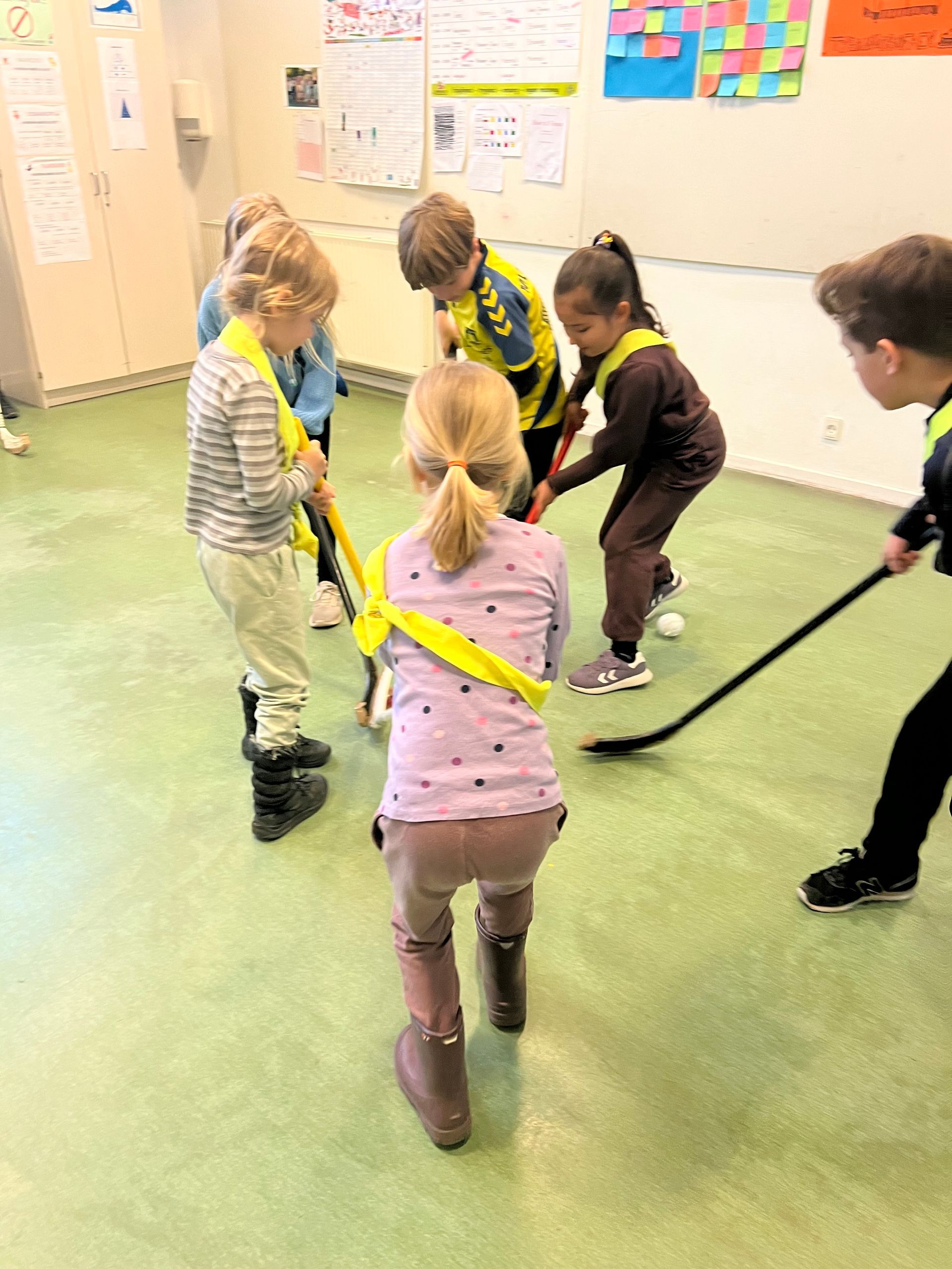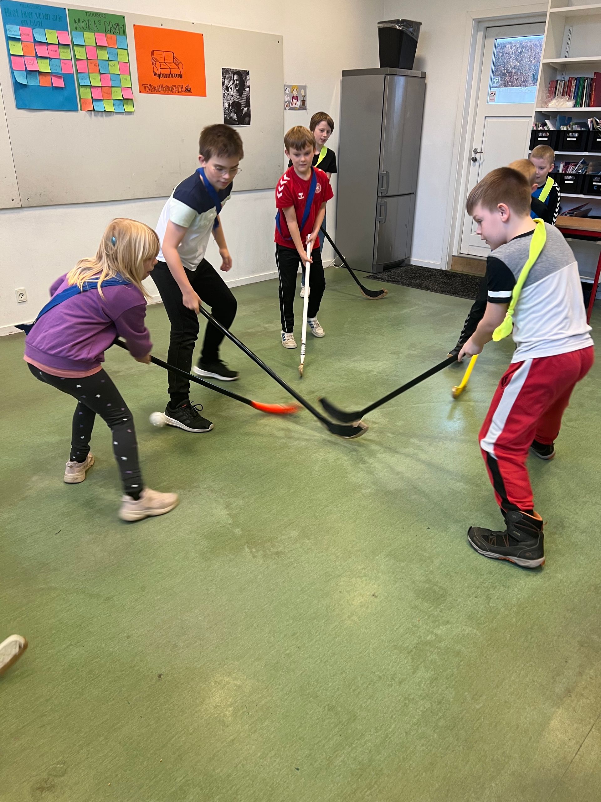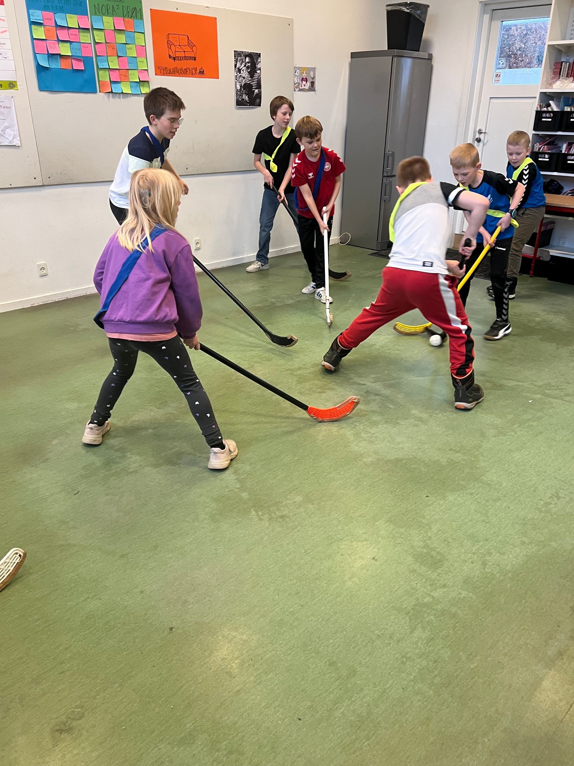 Inden påskeferien afholdt skolen vores årlige bolddag. Her er der billeder af de yngste elever som blev på skolen, hvor de blandt andet dystede i floorball.