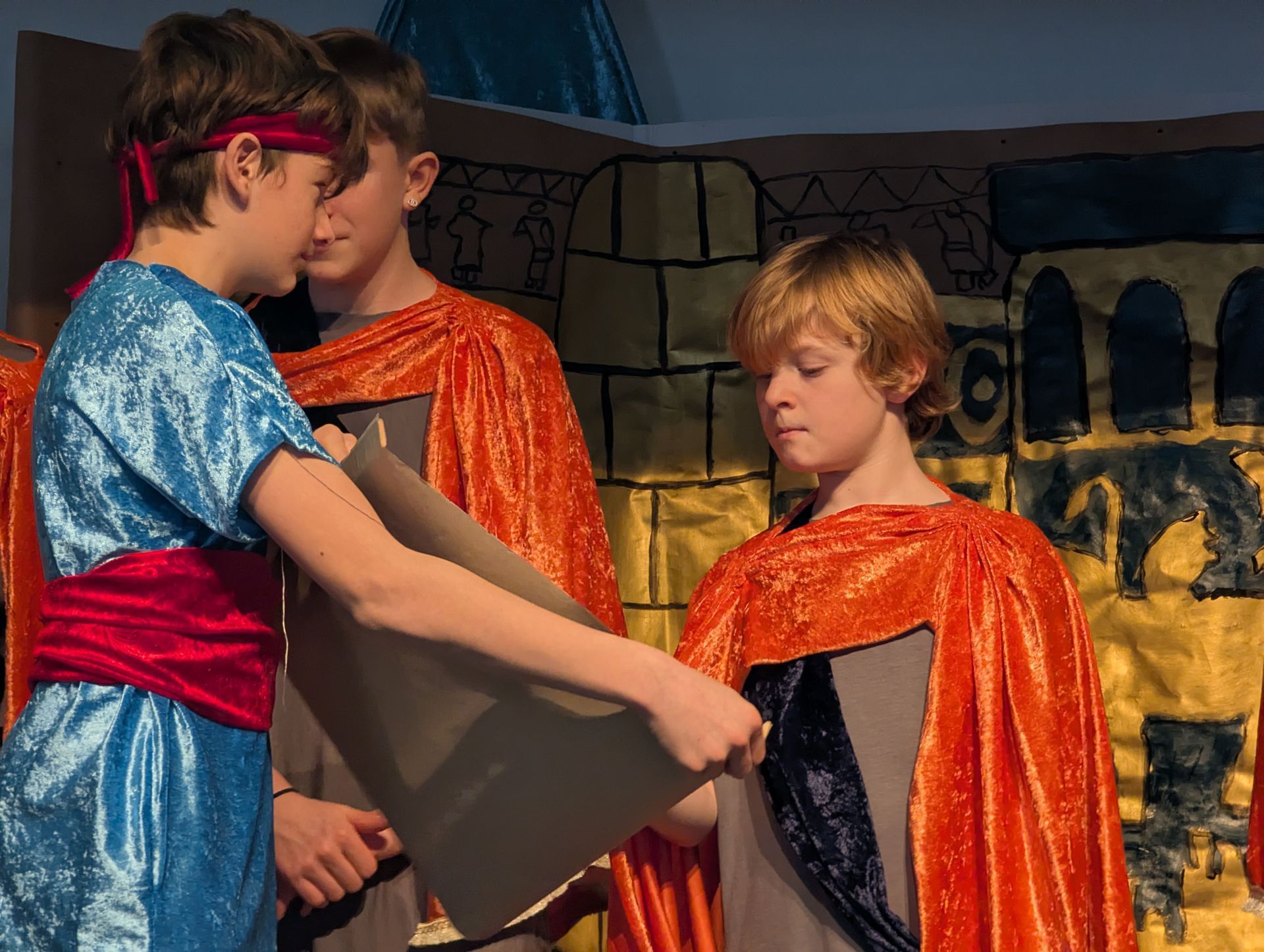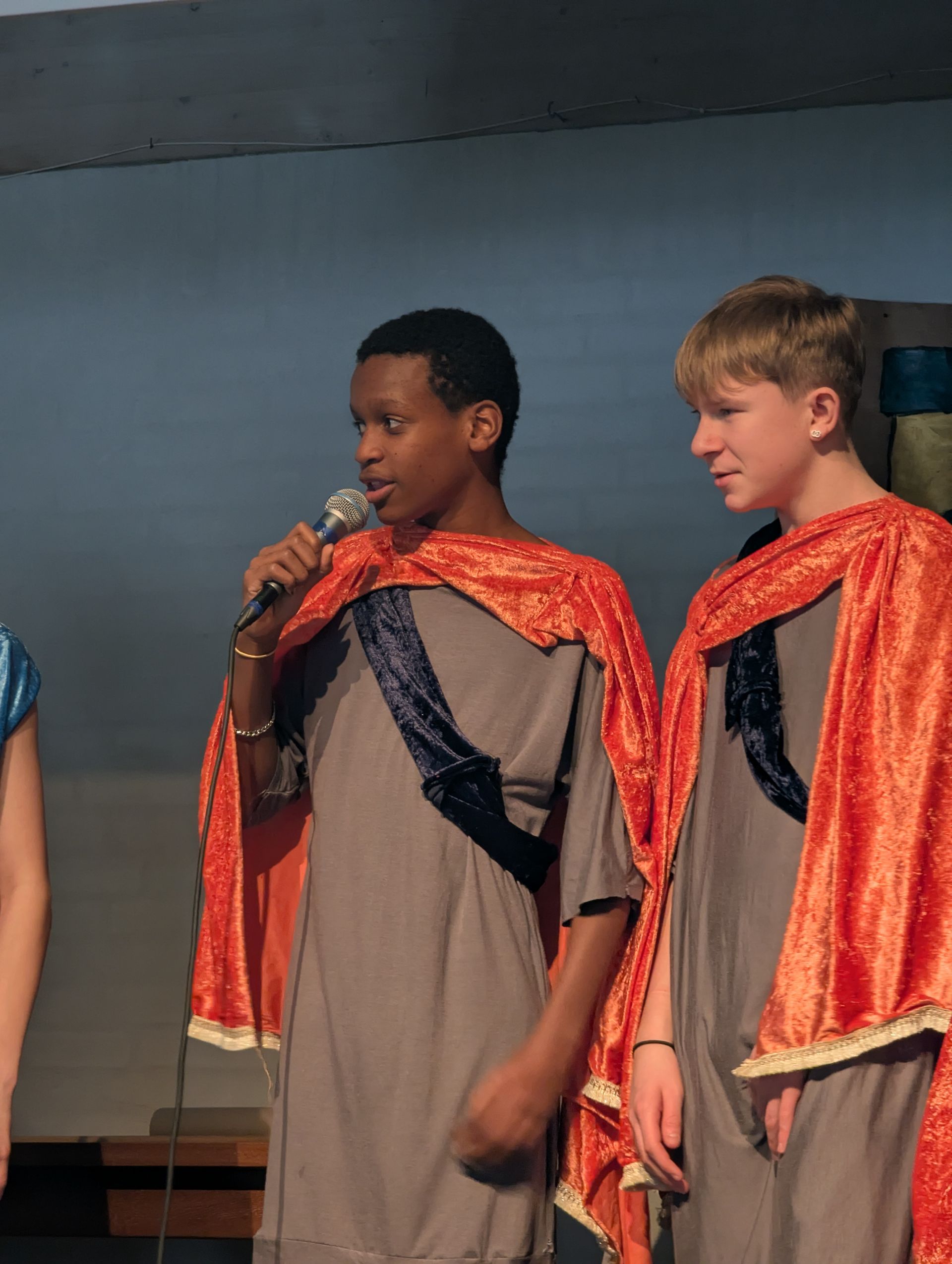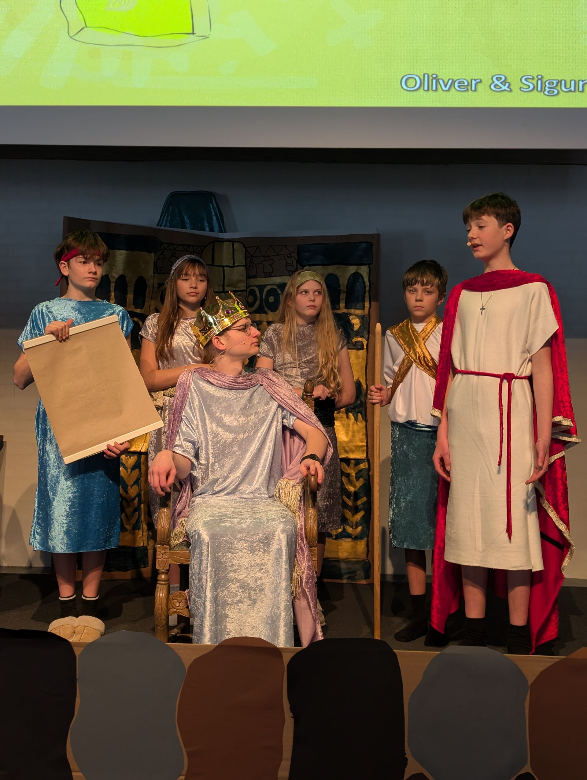 Daniel, som til daglig hedder Alfred Emil Barnes og går i 8. klasse, og kongen som til dagligt hedder Jacob Frost Hansen, kunne begge klappe sig selv på skulderen efter forestillingen De er begge to godt tilfredse med deres udførte arbejde. Da de begge to har haft nogle krævende roller– og har spillet mange scener.